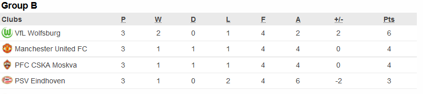Enne mängu on Manchester United alagrupis teisel ja CSKA kolmandal kohal sama arvu punktidega (4). Esimesel kohal on 6 punktiga Wolfsburg ja neljandal kohal PSV 3 punktiga.