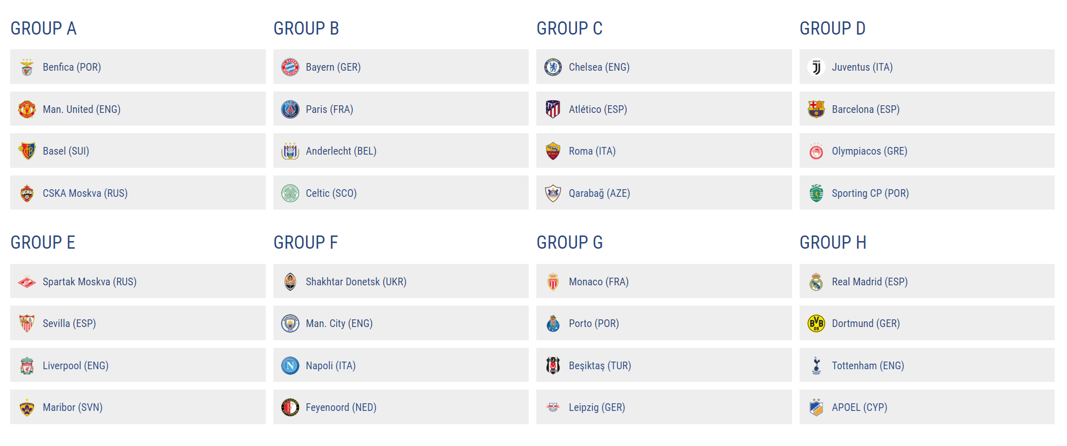Manchester United mängib A alagrupis ja grupp on järgnev: